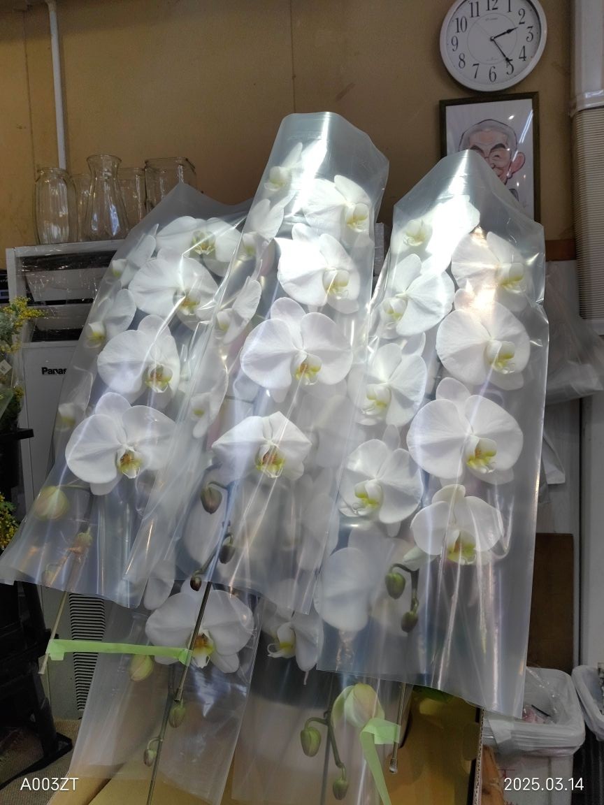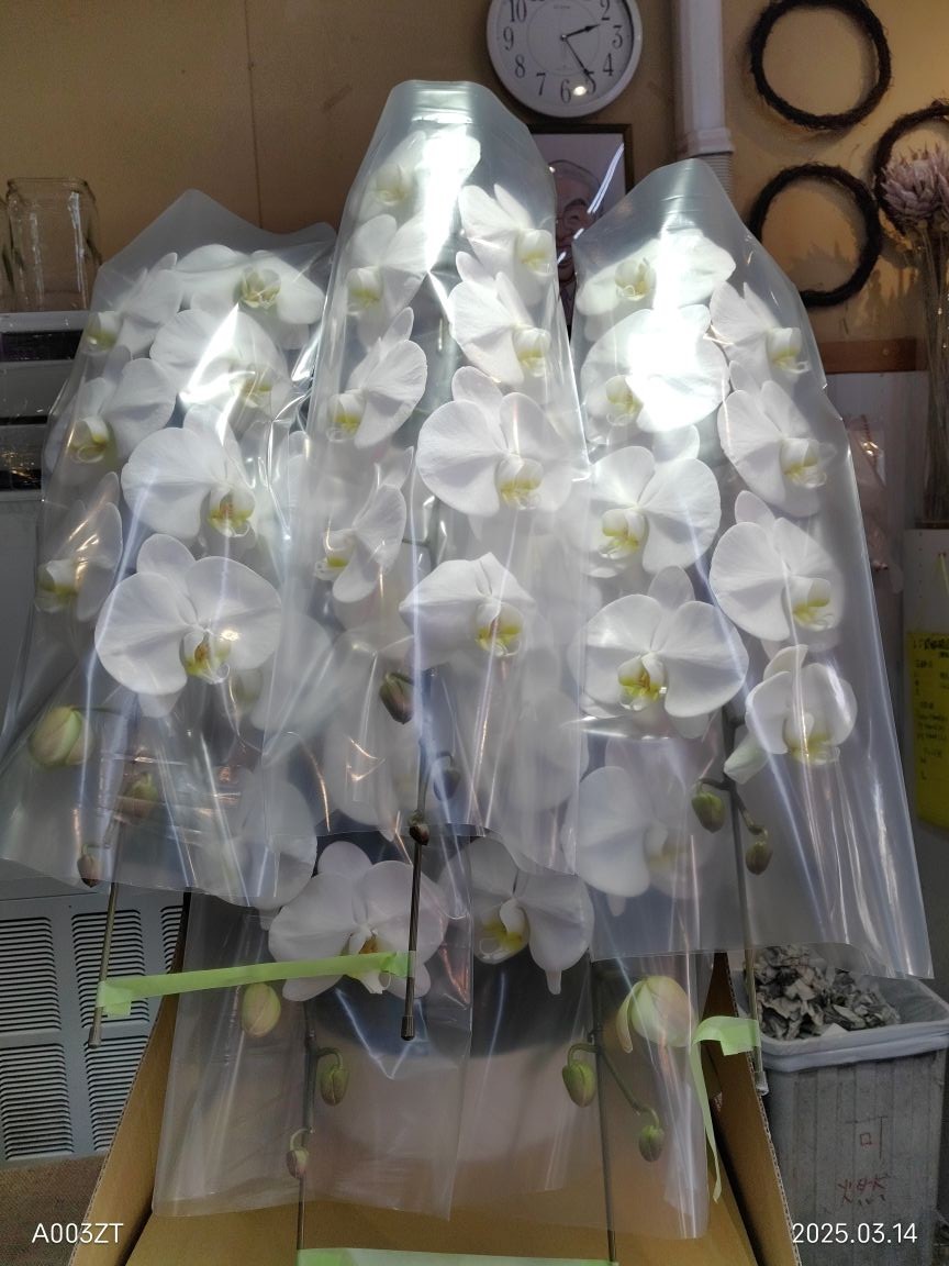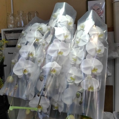 ご就任のお祝いの大輪の胡蝶蘭受注しました by Kaneko | posted in: WORKS | 0 今回は銀座のお店のママ就任祝いで、大輪の胡蝶蘭5本立てのご注文を 再びいただきました。 先日お誕生日の胡蝶蘭が立派で大変のお喜びでしたので、同じものとの ご用命でした。 今は胡蝶蘭の繁忙期でもあり、今回は八王子の日本フラワーさんにお願いして 調達して頂きました。 5本立ての胡蝶蘭は大きく、当方では運べずお店より発送してもらいましたが、 先方の方はまたまた気に入ってくださり、暫くしたら自宅へ運んで育てるそうです。 胡蝶蘭を好きな方でよかったです!