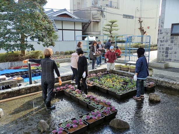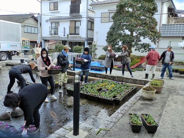 当初は現地での話の行き違いなど多々あり大変でしたが、その後は町家の方々の協力も頂き、花で盛り上がりました。